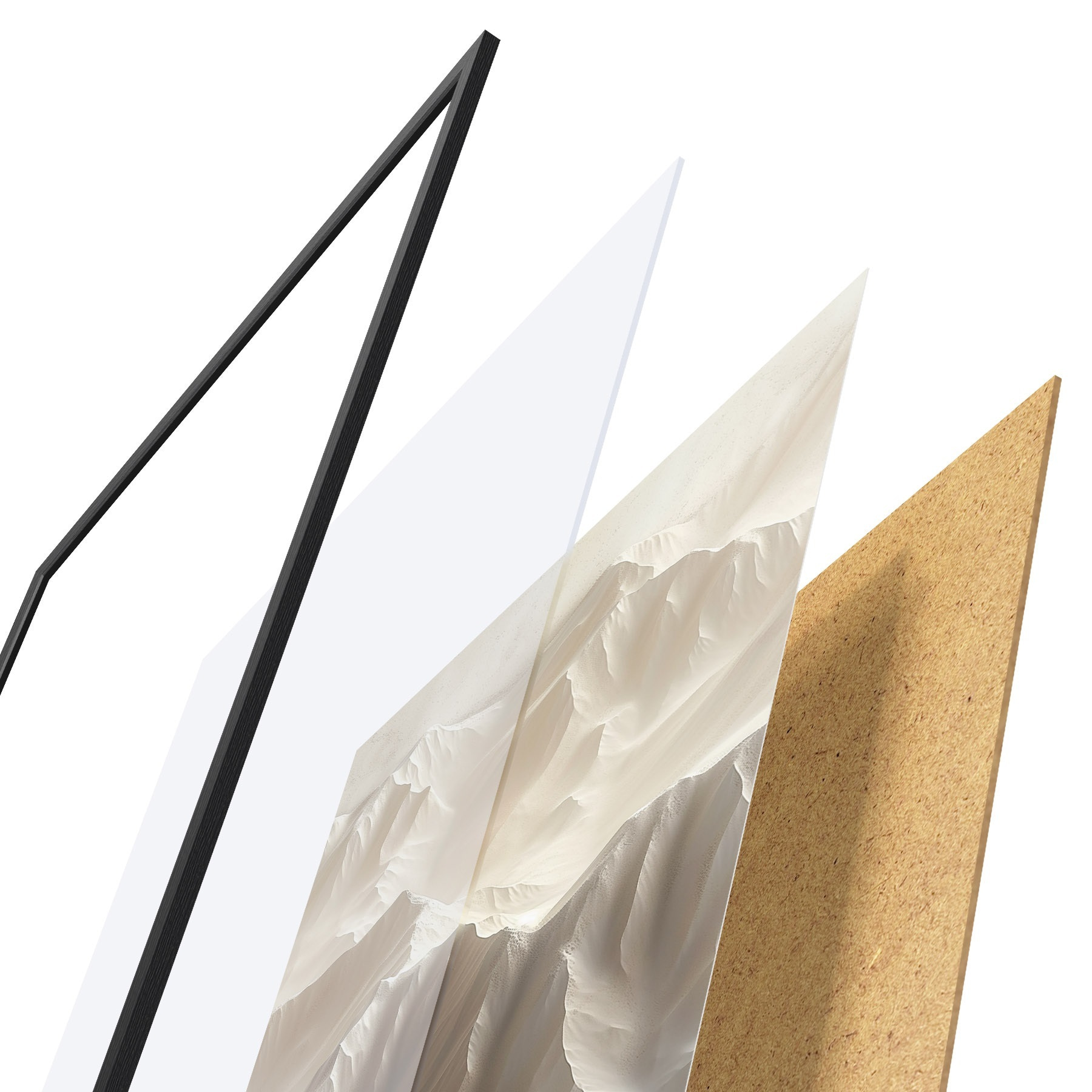 Plakát se skládá z rámu, plexiskla, tištěného obrazu a dřevotřískového podkladu. Díky úchytům na zadní straně lze plakát ihned zavěsit na zeď.