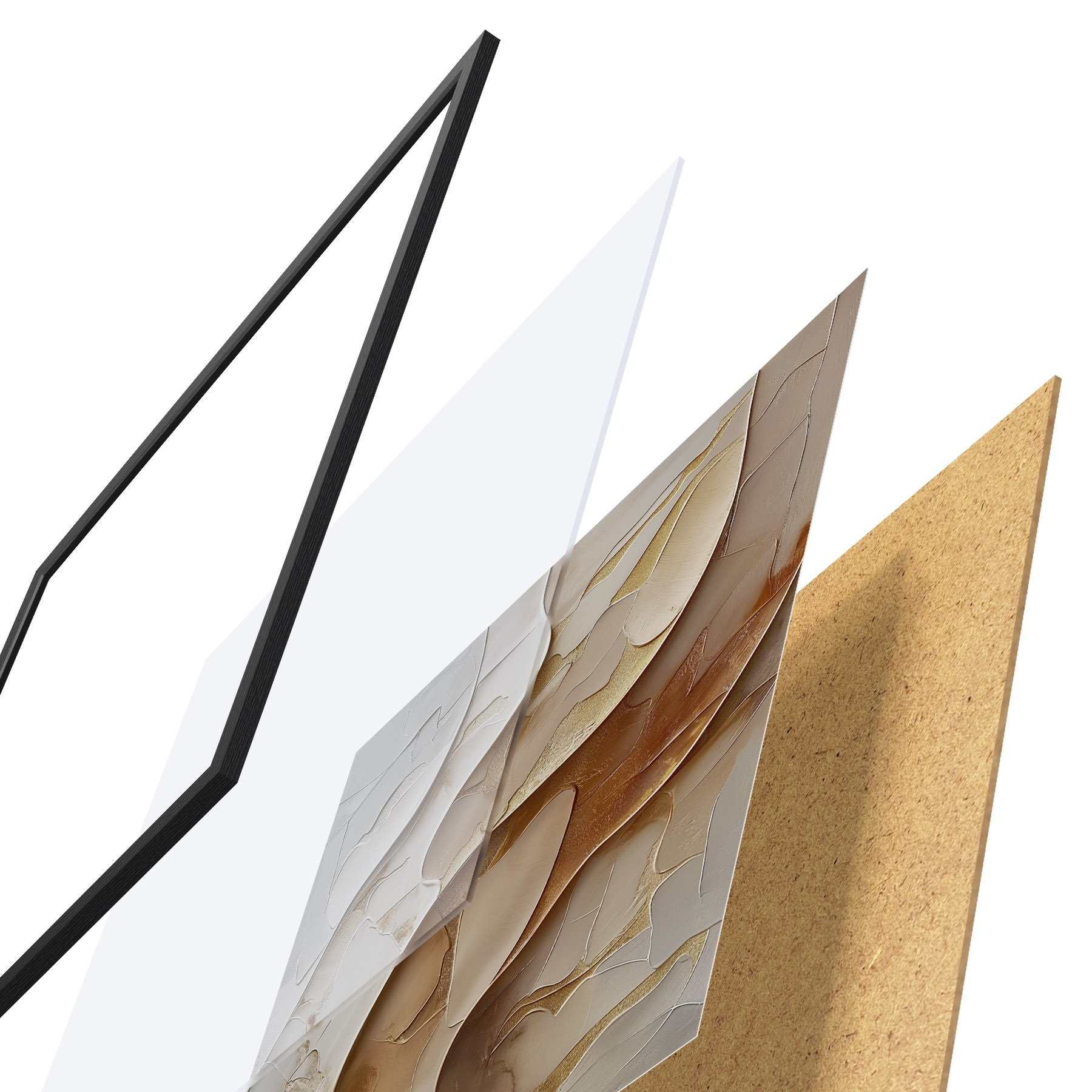 Plakát se skládá z rámu, plexiskla, tištěného obrazu a dřevotřískového podkladu. Díky úchytům na zadní straně lze plakát ihned zavěsit na zeď.