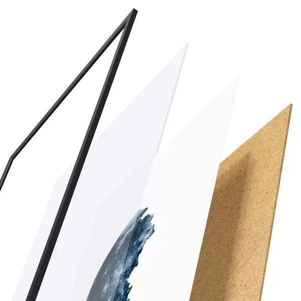 Plakát se skládá z rámu, plexiskla, tištěného obrazu a dřevotřískového podkladu. Díky úchytům na zadní straně lze plakát ihned zavěsit na zeď.