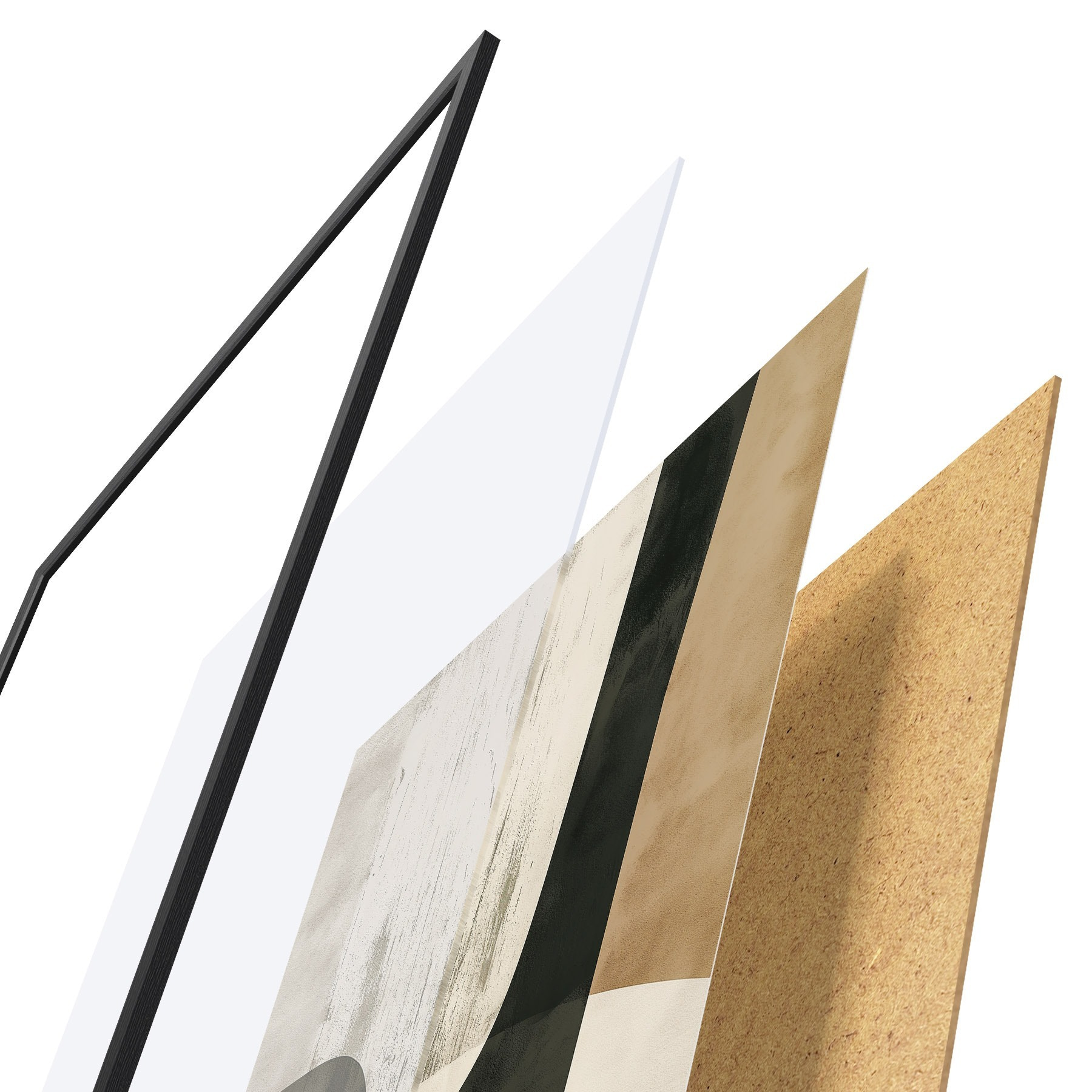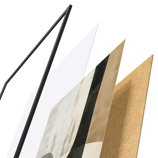 Plakát se skládá z rámu, plexiskla, tištěného obrazu a dřevotřískového podkladu. Díky úchytům na zadní straně lze plakát ihned zavěsit na zeď.