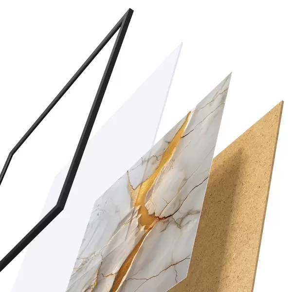 Plakát se skládá z rámu, plexiskla, tištěného obrazu a dřevotřískového podkladu. Díky úchytům na zadní straně lze plakát ihned zavěsit na zeď.