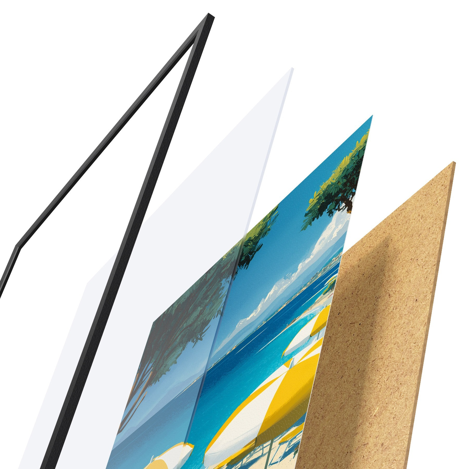 Plakát se skládá z rámu, plexiskla, tištěného obrazu a dřevotřískového podkladu. Díky úchytům na zadní straně lze plakát ihned zavěsit na zeď.