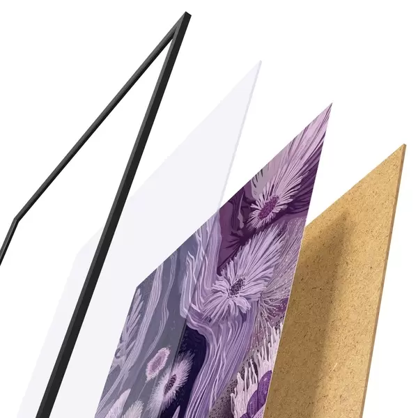Plakát se skládá z rámu, plexiskla, tištěného obrazu a dřevotřískového podkladu. Díky úchytům na zadní straně lze plakát ihned zavěsit na zeď.
