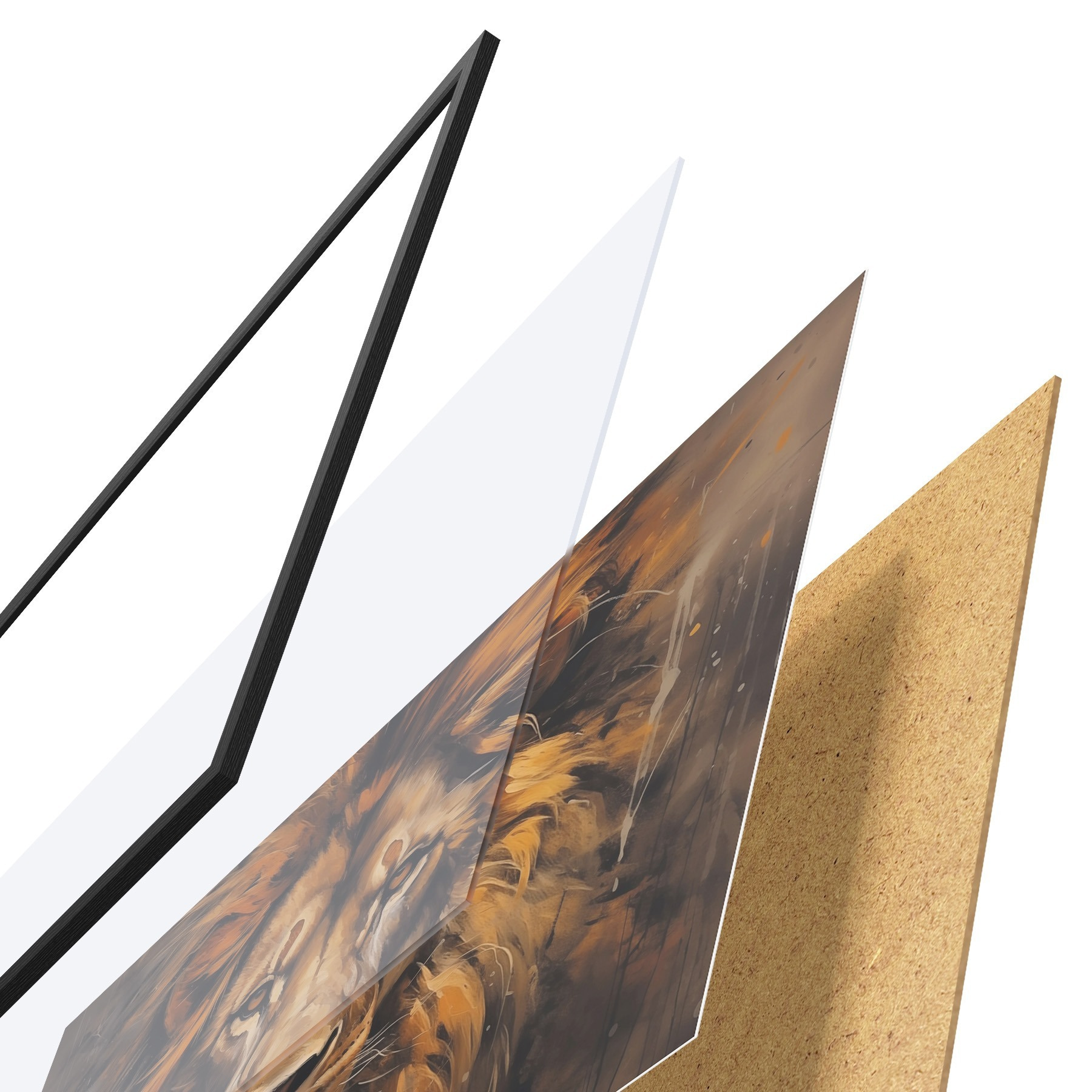 Plakát se skládá z rámu, plexiskla, tištěného obrazu a dřevotřískového podkladu. Díky úchytům na zadní straně lze plakát ihned zavěsit na zeď.