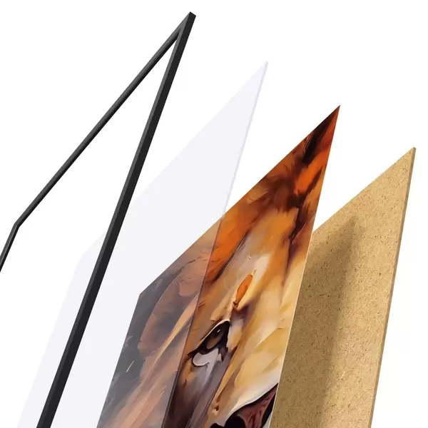 Plakát se skládá z rámu, plexiskla, tištěného obrazu a dřevotřískového podkladu. Díky úchytům na zadní straně lze plakát ihned zavěsit na zeď.