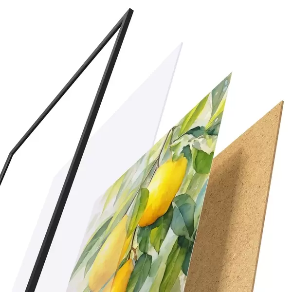 Plakát se skládá z rámu, plexiskla, tištěného obrazu a dřevotřískového podkladu. Díky úchytům na zadní straně lze plakát ihned zavěsit na zeď.