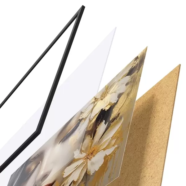 Plakát se skládá z rámu, plexiskla, tištěného obrazu a dřevotřískového podkladu. Díky úchytům na zadní straně lze plakát ihned zavěsit na zeď.