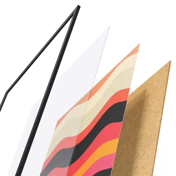 Plakát se skládá z rámu, plexiskla, tištěného obrazu a dřevotřískového podkladu. Díky úchytům na zadní straně lze plakát ihned zavěsit na zeď.