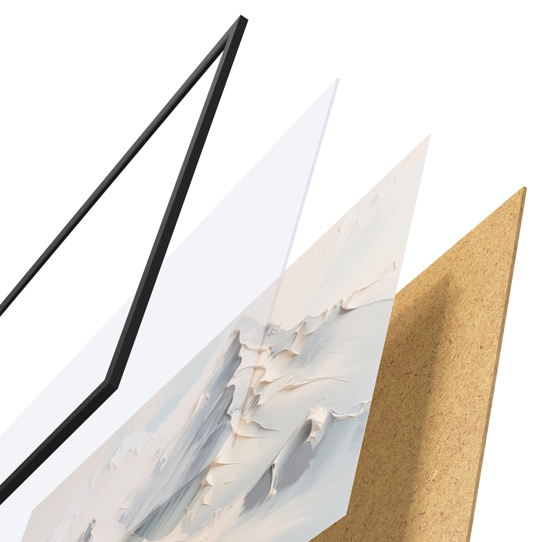 Plakát se skládá z rámu, plexiskla, tištěného obrazu a dřevotřískového podkladu. Díky úchytům na zadní straně lze plakát ihned zavěsit na zeď.