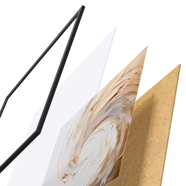 Plakát se skládá z rámu, plexiskla, tištěného obrazu a dřevotřískového podkladu. Díky úchytům na zadní straně lze plakát ihned zavěsit na zeď.