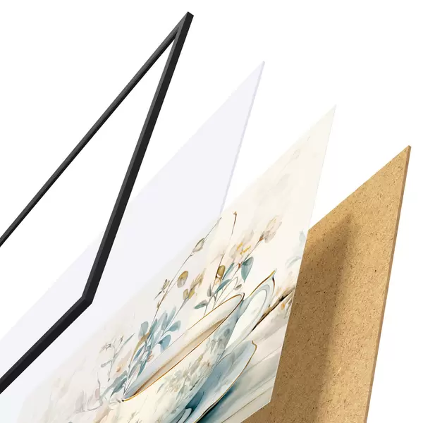 Plakát se skládá z rámu, plexiskla, tištěného obrazu a dřevotřískového podkladu. Díky úchytům na zadní straně lze plakát ihned zavěsit na zeď.