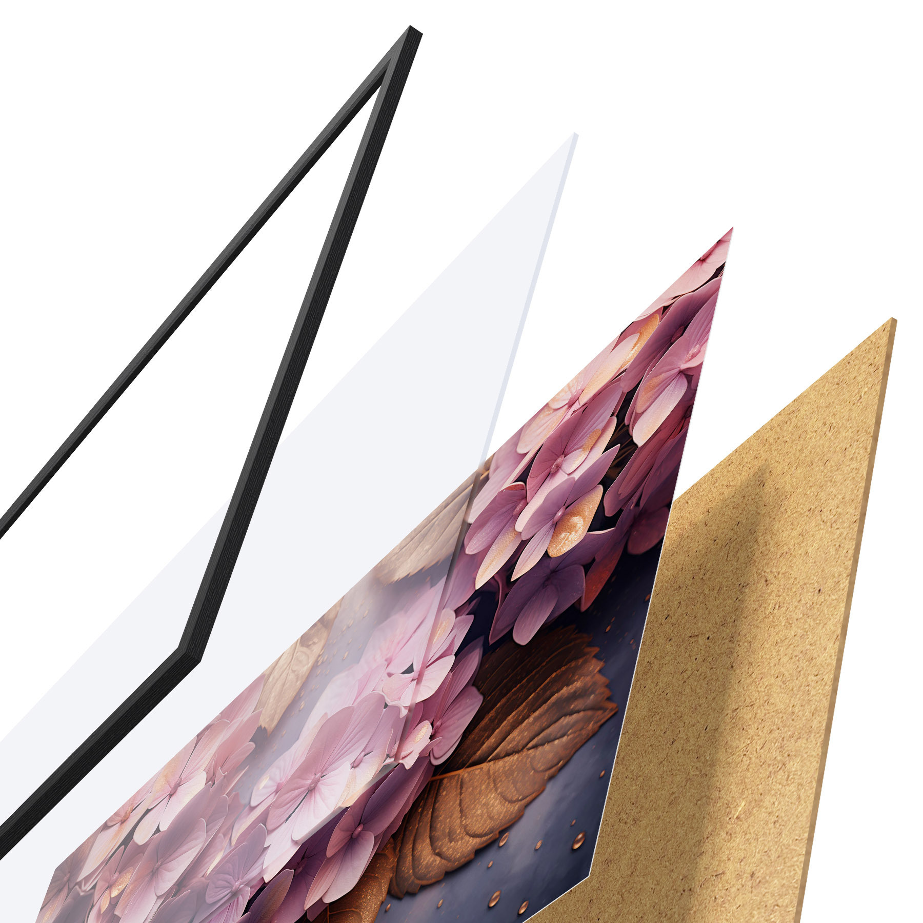 Plakát se skládá z rámu, plexiskla, tištěného obrazu a dřevotřískového podkladu. Díky úchytům na zadní straně lze plakát ihned zavěsit na zeď.