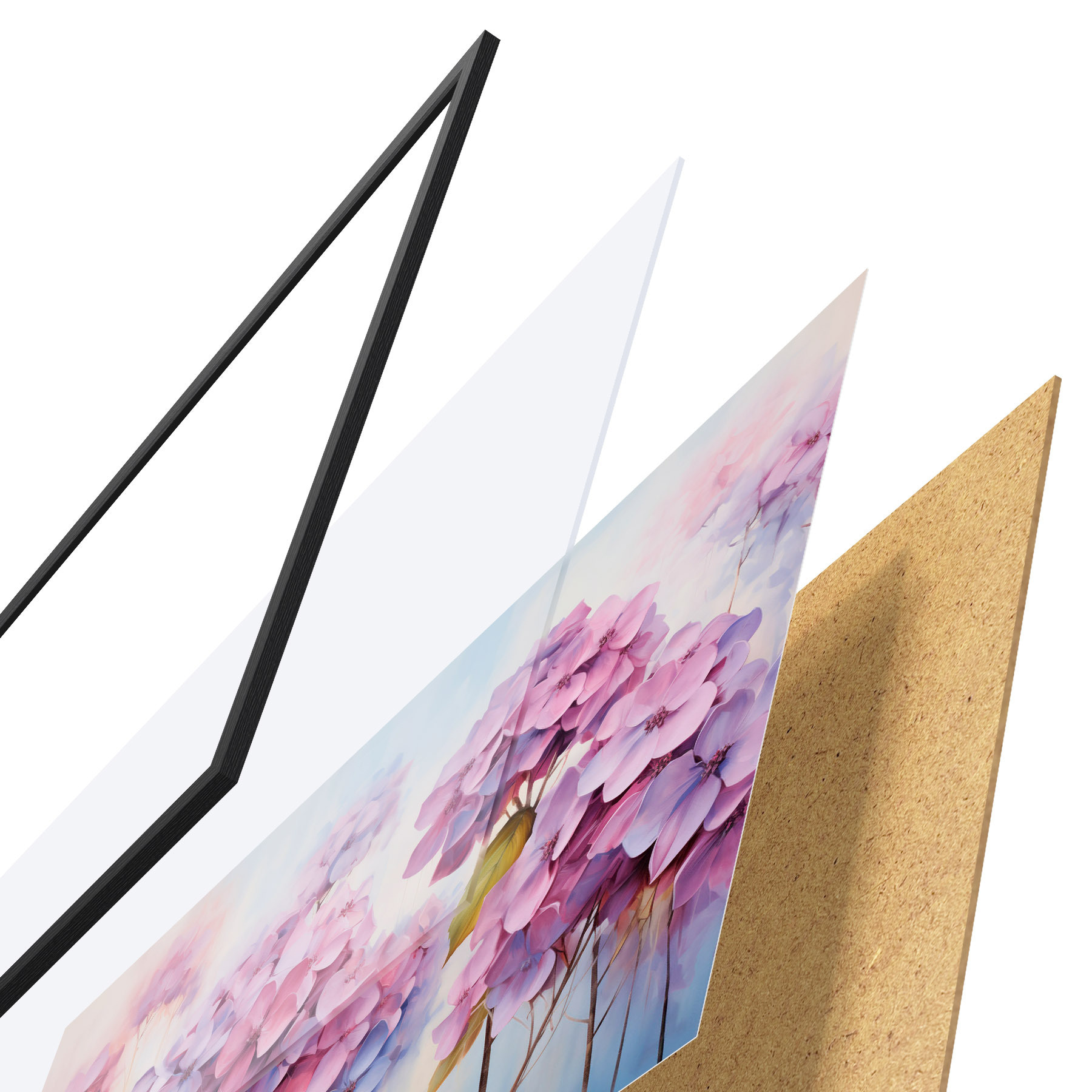 Plakát se skládá z rámu, plexiskla, tištěného obrazu a dřevotřískového podkladu. Díky úchytům na zadní straně lze plakát ihned zavěsit na zeď.