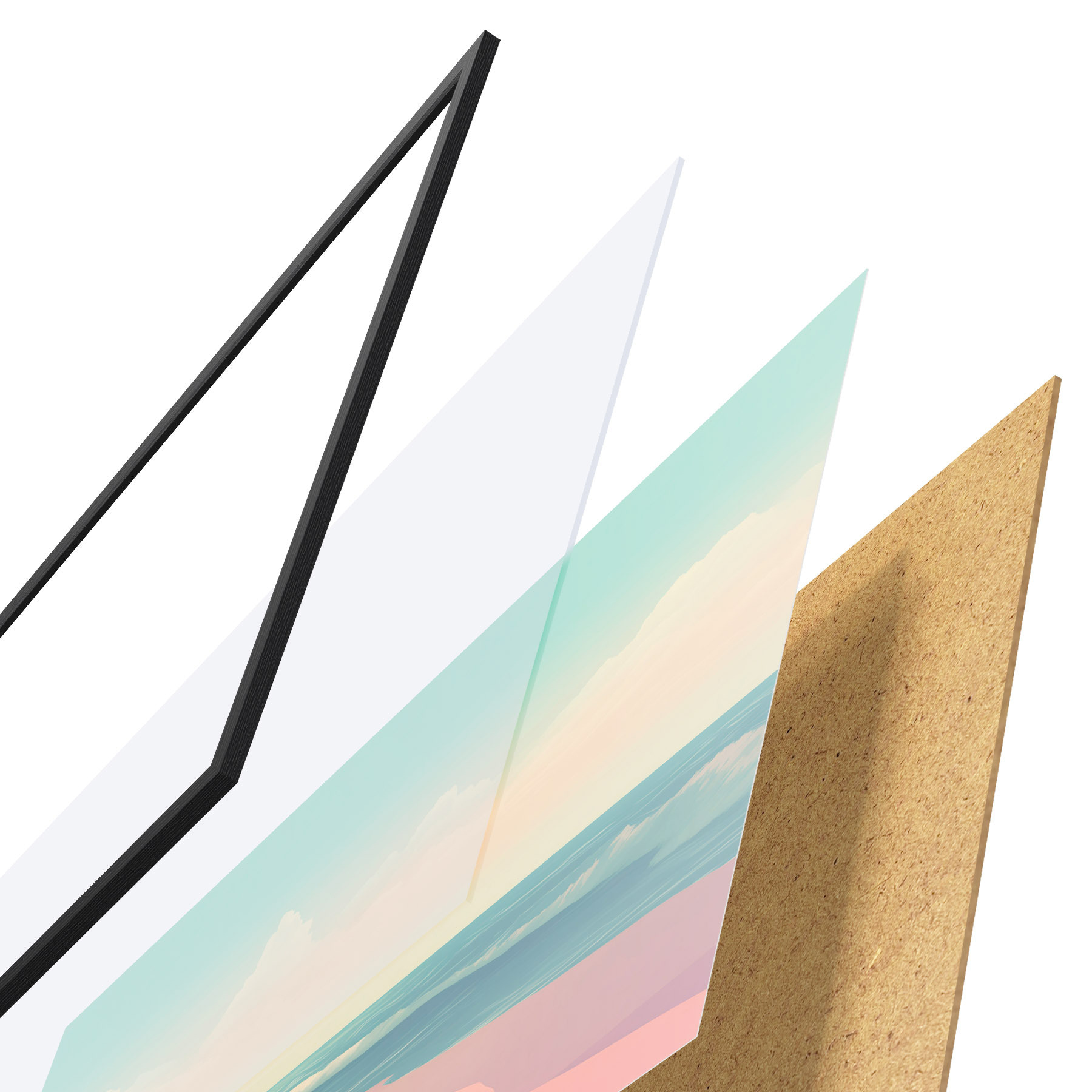 Plakát se skládá z rámu, plexiskla, tištěného obrazu a dřevotřískového podkladu. Díky úchytům na zadní straně lze plakát ihned zavěsit na zeď.