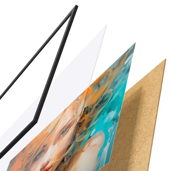 Plakát se skládá z rámu, plexiskla, tištěného obrazu a dřevotřískového podkladu. Díky úchytům na zadní straně lze plakát ihned zavěsit na zeď.