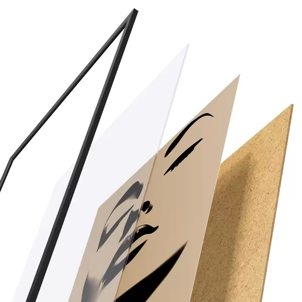 Plakát se skládá z rámu, plexiskla, tištěného obrazu a dřevotřískového podkladu. Díky úchytům na zadní straně lze plakát ihned zavěsit na zeď.