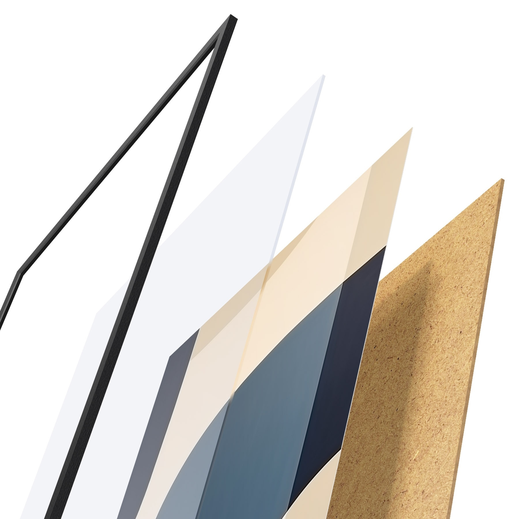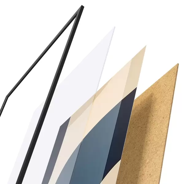 Plakát se skládá z rámu, plexiskla, tištěného obrazu a dřevotřískového podkladu. Díky úchytům na zadní straně lze plakát ihned zavěsit na zeď.