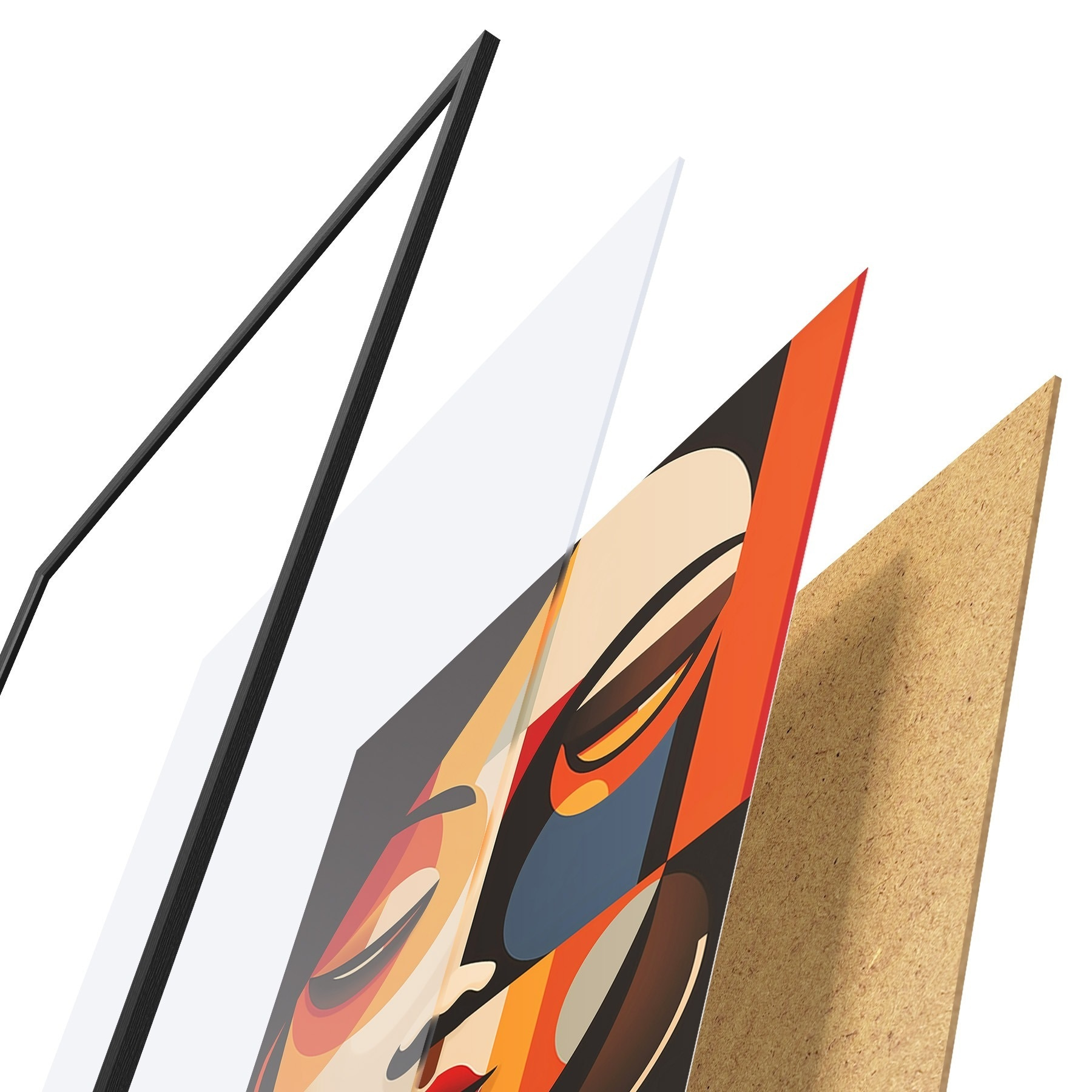 Plakát se skládá z rámu, plexiskla, tištěného obrazu a dřevotřískového podkladu. Díky úchytům na zadní straně lze plakát ihned zavěsit na zeď.