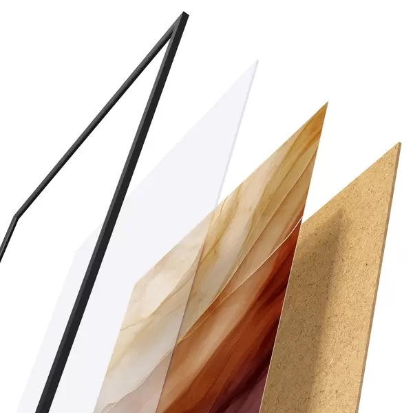 Plakát se skládá z rámu, plexiskla, tištěného obrazu a dřevotřískového podkladu. Díky úchytům na zadní straně lze plakát ihned zavěsit na zeď.