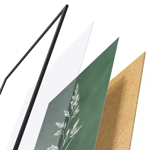 Plakát se skládá z rámu, plexiskla, tištěného obrazu a dřevotřískového podkladu. Díky úchytům na zadní straně lze plakát ihned zavěsit na zeď.