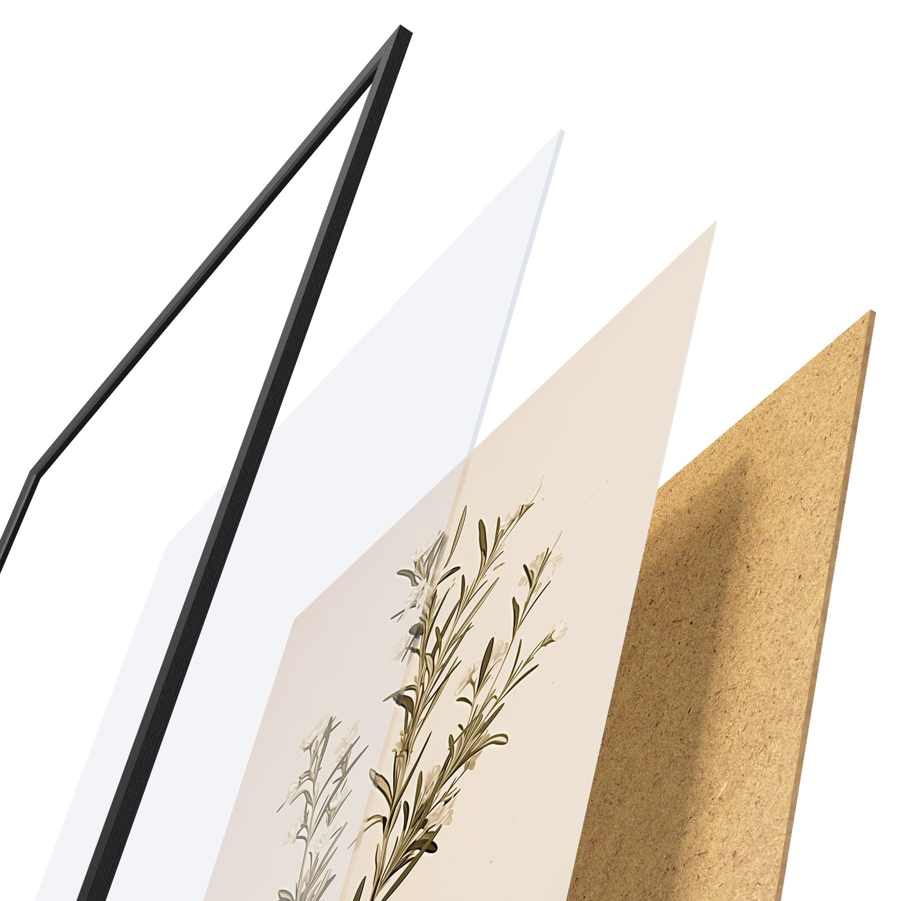 Plakát se skládá z rámu, plexiskla, tištěného obrazu a dřevotřískového podkladu. Díky úchytům na zadní straně lze plakát ihned zavěsit na zeď.