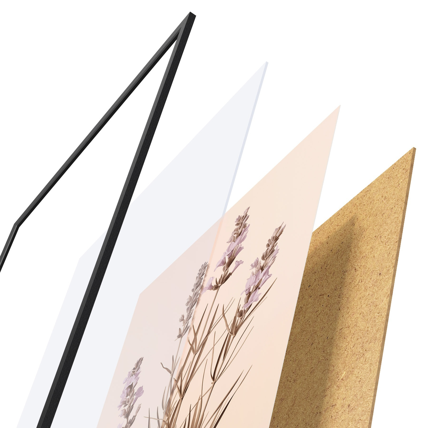 Plakát se skládá z rámu, plexiskla, tištěného obrazu a dřevotřískového podkladu. Díky úchytům na zadní straně lze plakát ihned zavěsit na zeď.