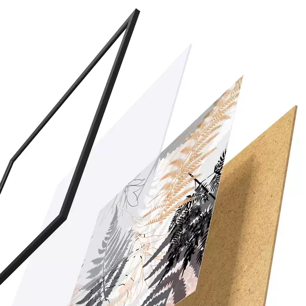 Plakát se skládá z rámu, plexiskla, tištěného obrazu a dřevotřískového podkladu. Díky úchytům na zadní straně lze plakát ihned zavěsit na zeď.