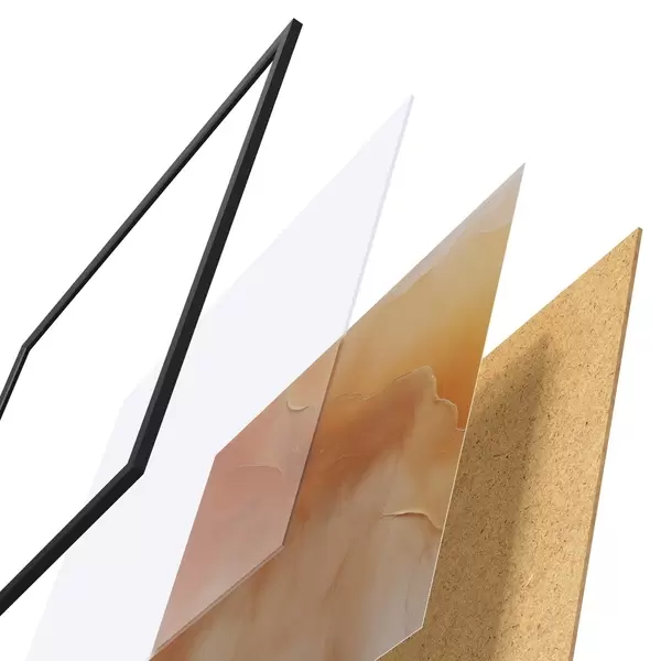 Plakát se skládá z rámu, plexiskla, tištěného obrazu a dřevotřískového podkladu. Díky úchytům na zadní straně lze plakát ihned zavěsit na zeď.