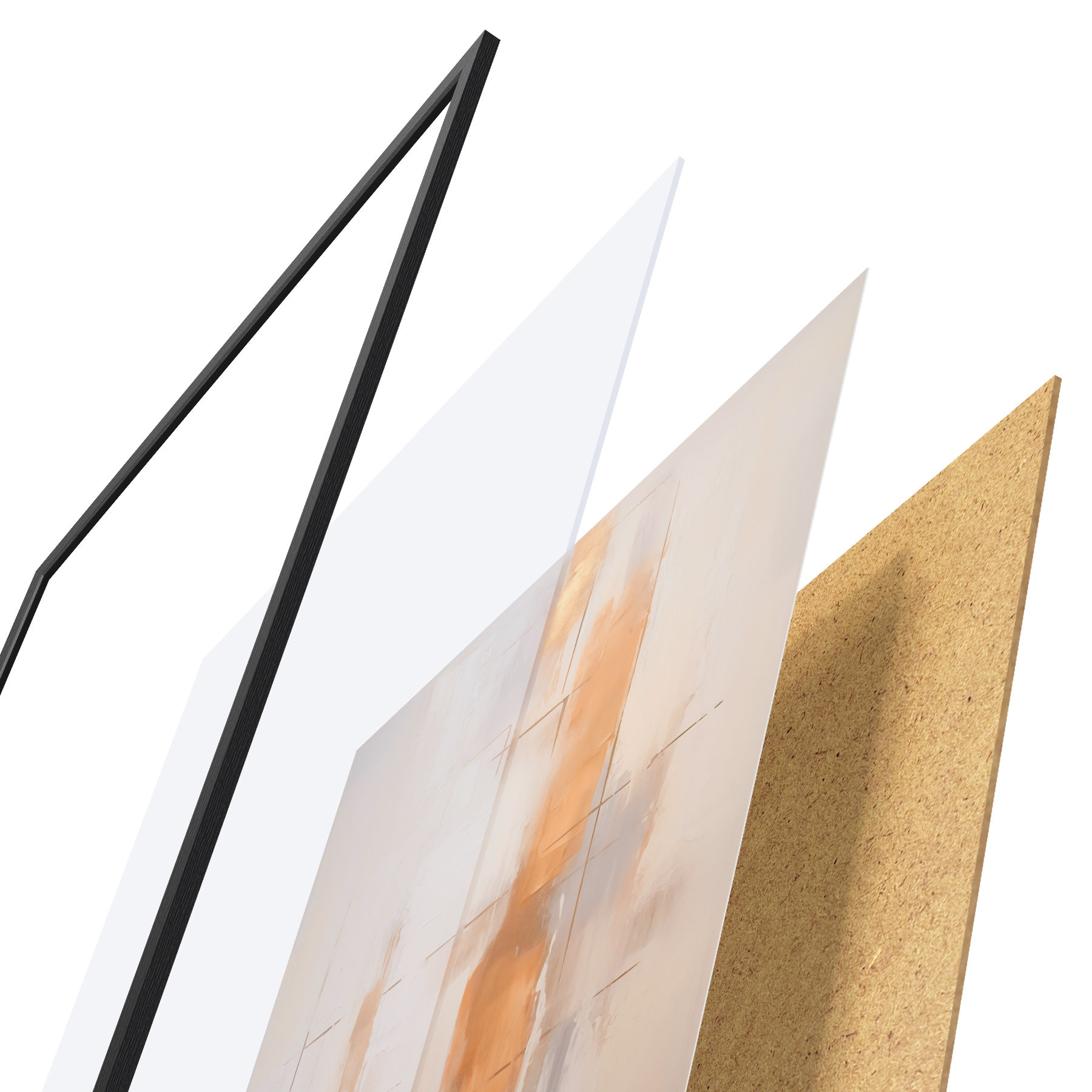 Plakát se skládá z rámu, plexiskla, tištěného obrazu a dřevotřískového podkladu. Díky úchytům na zadní straně lze plakát ihned zavěsit na zeď.