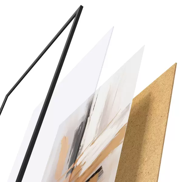 Plakát se skládá z rámu, plexiskla, tištěného obrazu a dřevotřískového podkladu. Díky úchytům na zadní straně lze plakát ihned zavěsit na zeď.