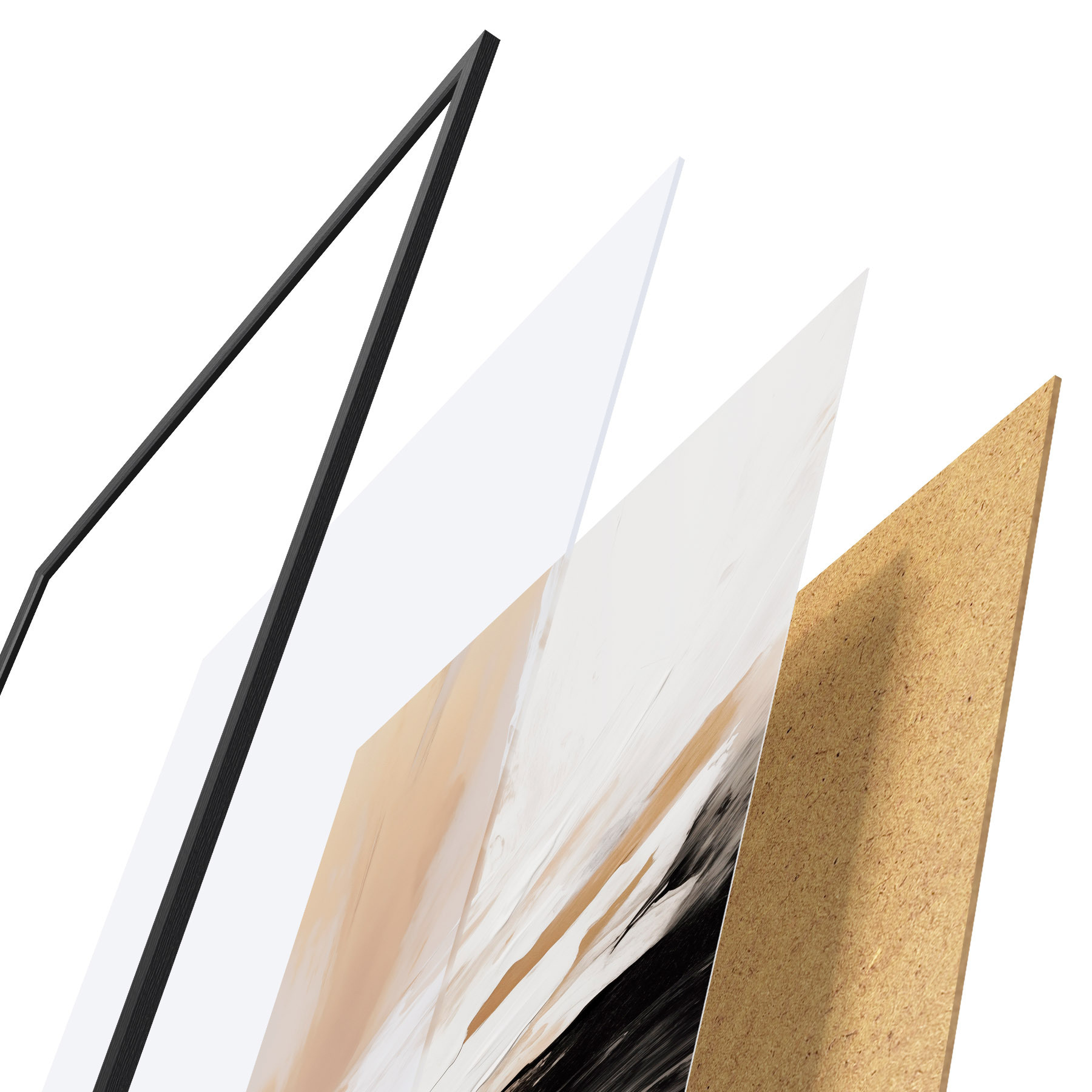 Plakát se skládá z rámu, plexiskla, tištěného obrazu a dřevotřískového podkladu. Díky úchytům na zadní straně lze plakát ihned zavěsit na zeď.