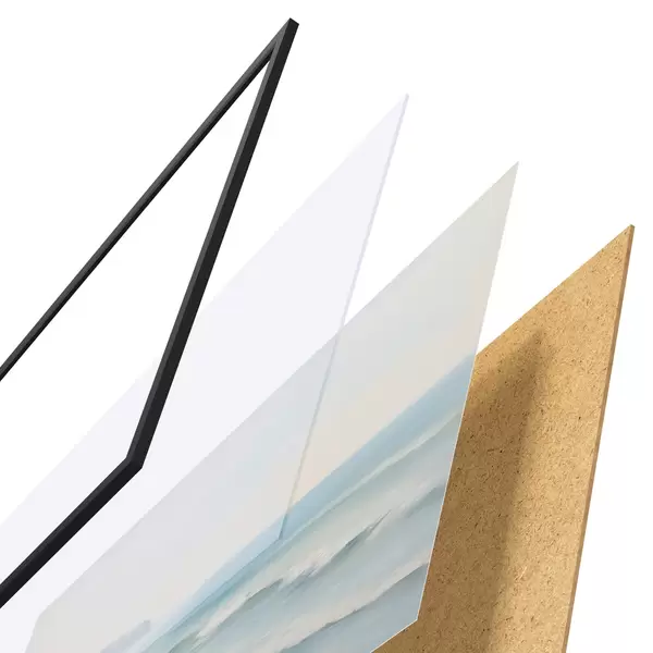 Plakát se skládá z rámu, plexiskla, tištěného obrazu a dřevotřískového podkladu. Díky úchytům na zadní straně lze plakát ihned zavěsit na zeď.