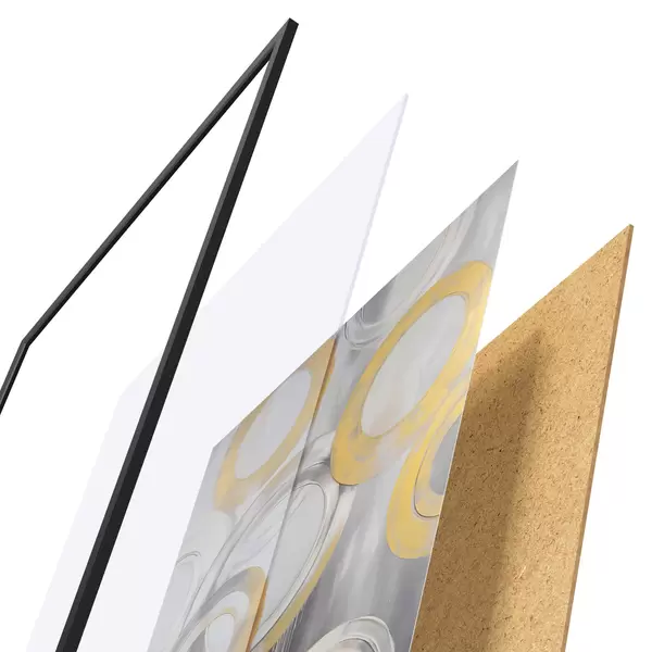 Plakát se skládá z rámu, plexiskla, tištěného obrazu a dřevotřískového podkladu. Díky úchytům na zadní straně lze plakát ihned zavěsit na zeď.