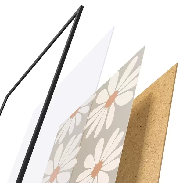 Plakát se skládá z rámu, plexiskla, tištěného obrazu a dřevotřískového podkladu. Díky úchytům na zadní straně lze plakát ihned zavěsit na zeď.