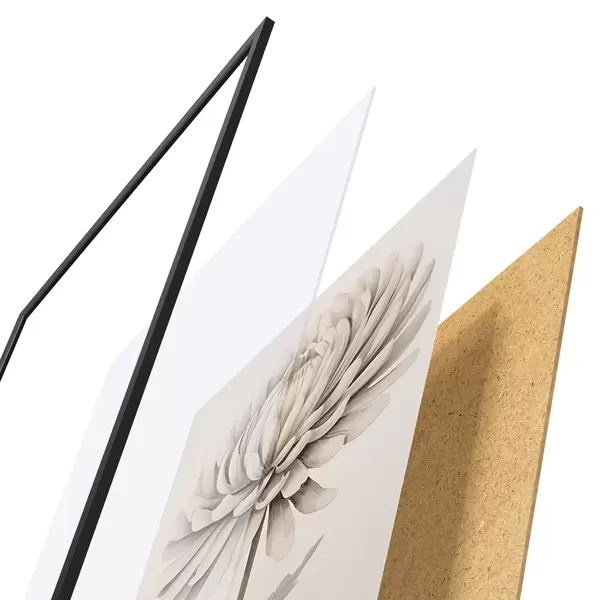 Plakát se skládá z rámu, plexiskla, tištěného obrazu a dřevotřískového podkladu. Díky úchytům na zadní straně lze plakát ihned zavěsit na zeď.