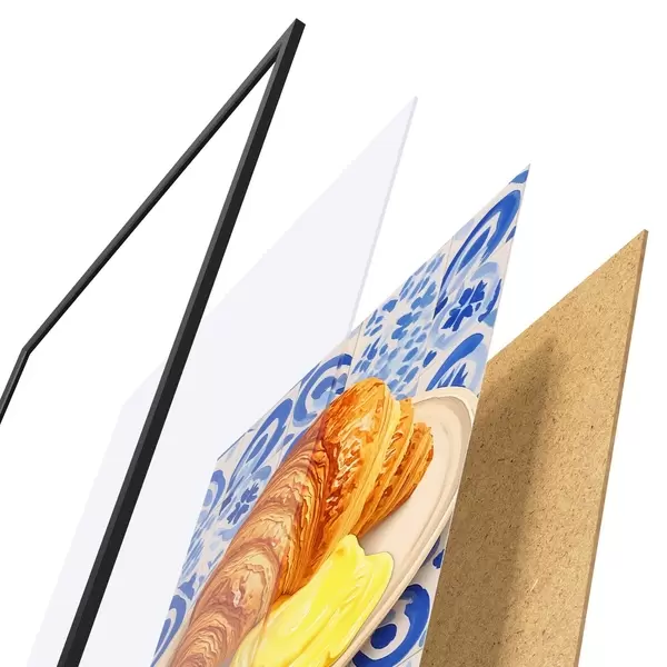 Plakát se skládá z rámu, plexiskla, tištěného obrazu a dřevotřískového podkladu. Díky úchytům na zadní straně lze plakát ihned zavěsit na zeď.