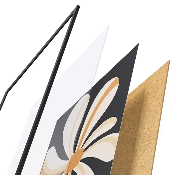 Plakát se skládá z rámu, plexiskla, tištěného obrazu a dřevotřískového podkladu. Díky úchytům na zadní straně lze plakát ihned zavěsit na zeď.