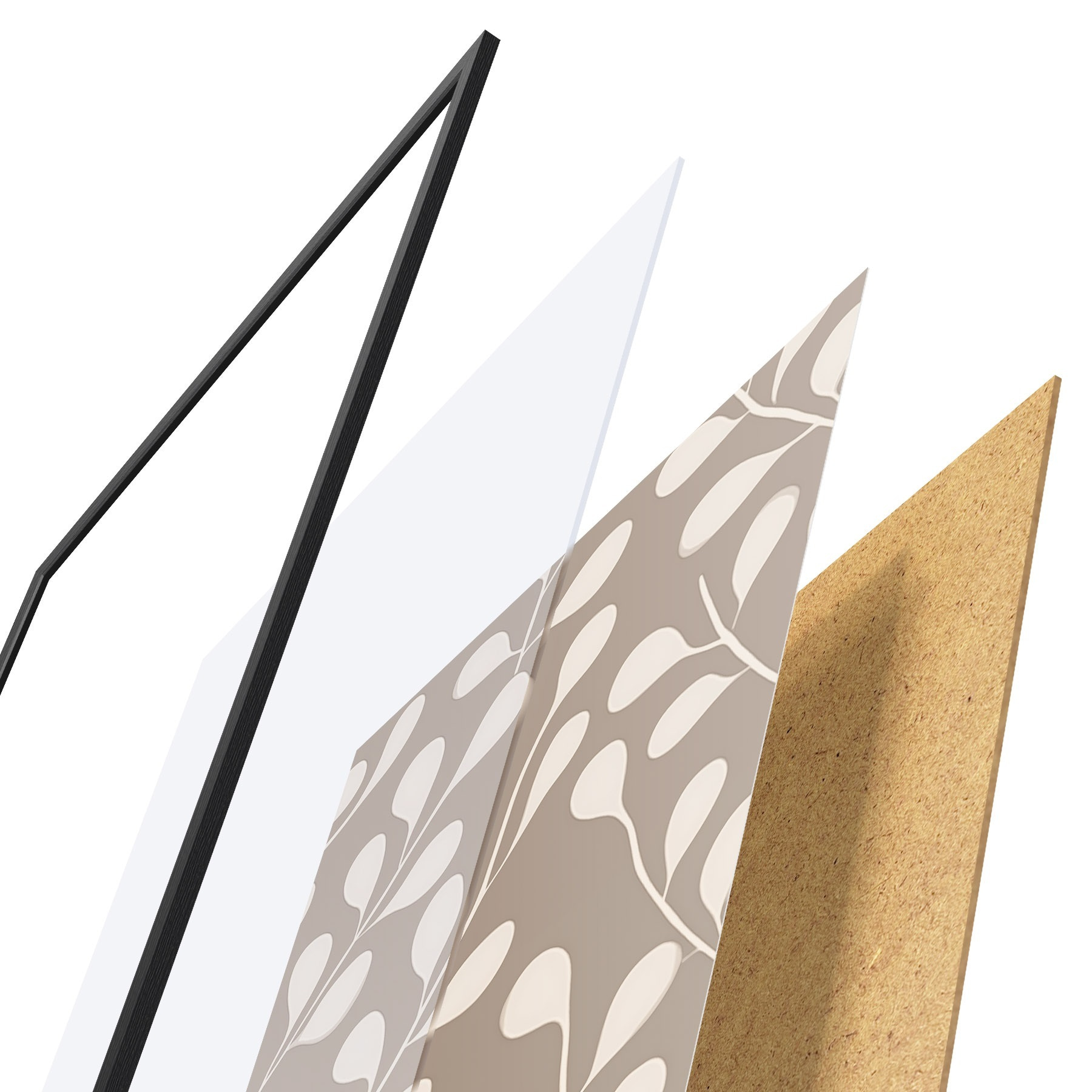 Plakát se skládá z rámu, plexiskla, tištěného obrazu a dřevotřískového podkladu. Díky úchytům na zadní straně lze plakát ihned zavěsit na zeď.