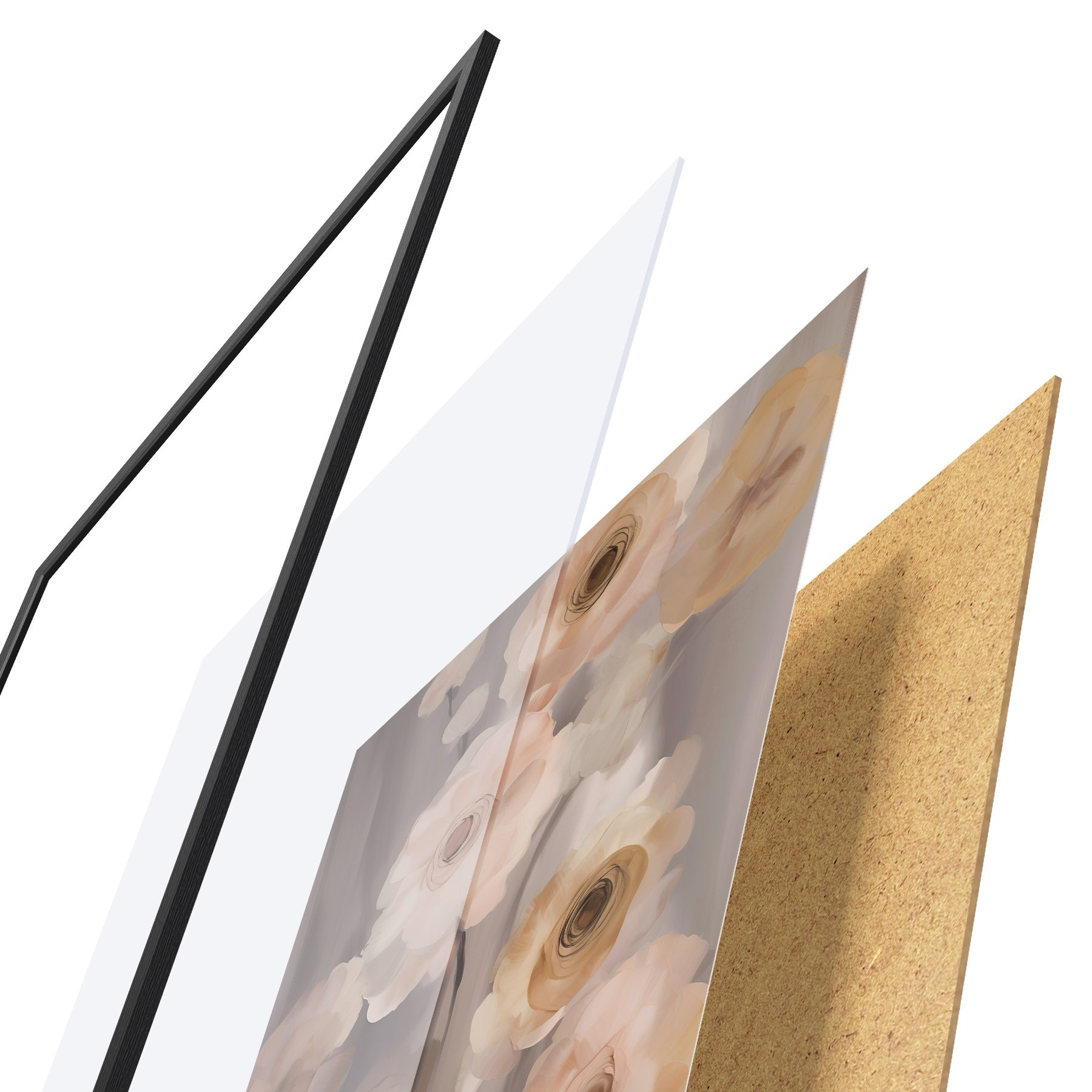 Plakát se skládá z rámu, plexiskla, tištěného obrazu a dřevotřískového podkladu. Díky úchytům na zadní straně lze plakát ihned zavěsit na zeď.