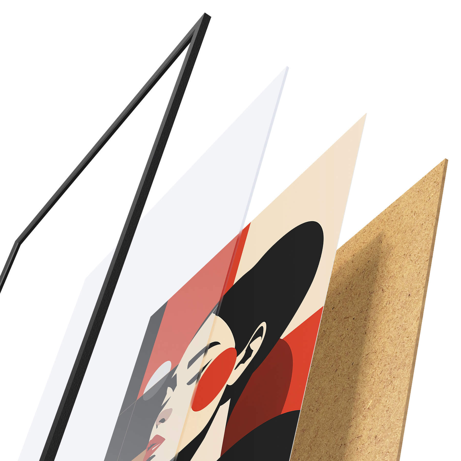 Plakát se skládá z rámu, plexiskla, tištěného obrazu a dřevotřískového podkladu. Díky úchytům na zadní straně lze plakát ihned zavěsit na zeď.