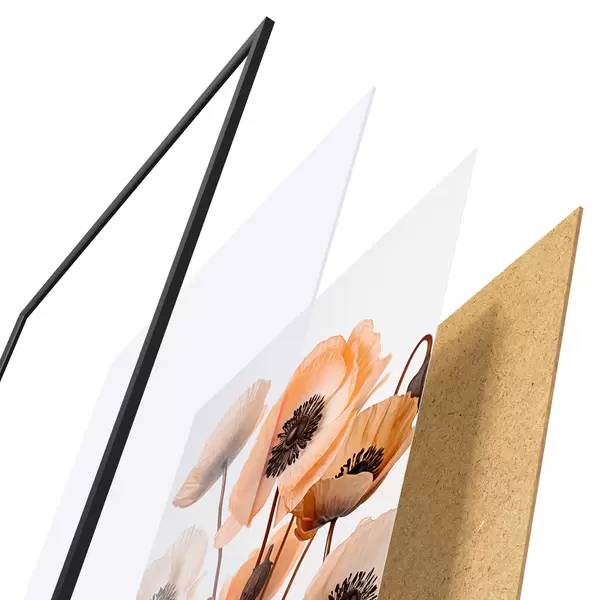 Plakát se skládá z rámu, plexiskla, tištěného obrazu a dřevotřískového podkladu. Díky úchytům na zadní straně lze plakát ihned zavěsit na zeď.