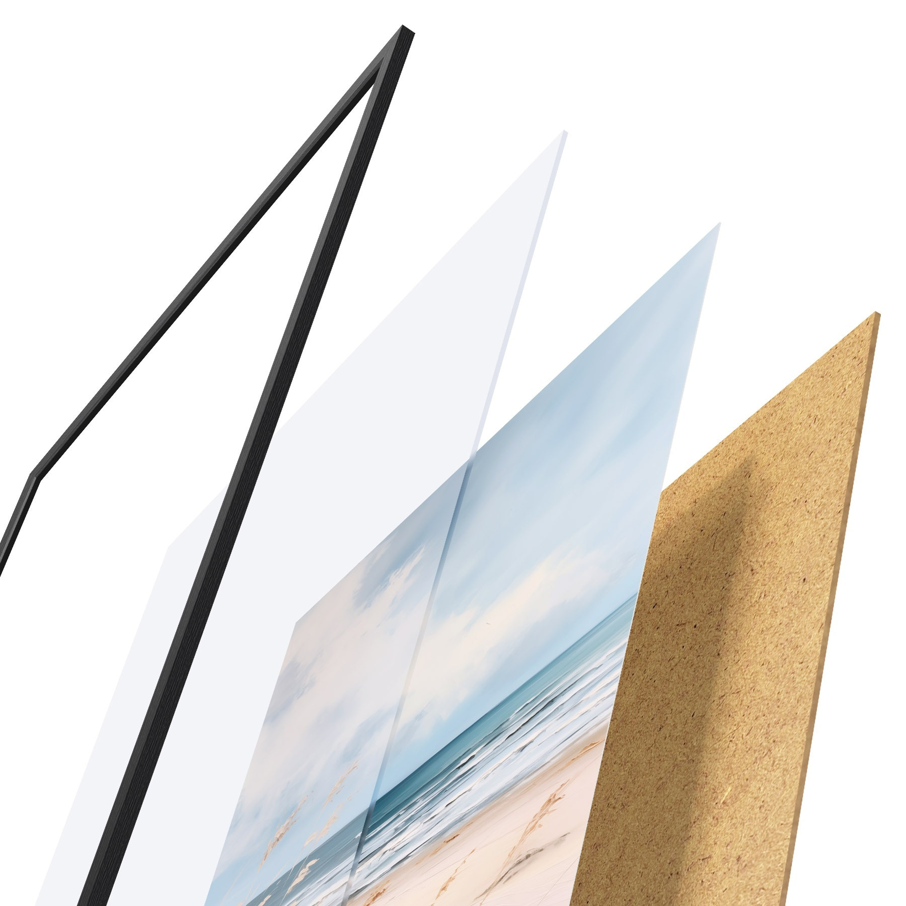 Plakát se skládá z rámu, plexiskla, tištěného obrazu a dřevotřískového podkladu. Díky úchytům na zadní straně lze plakát ihned zavěsit na zeď.