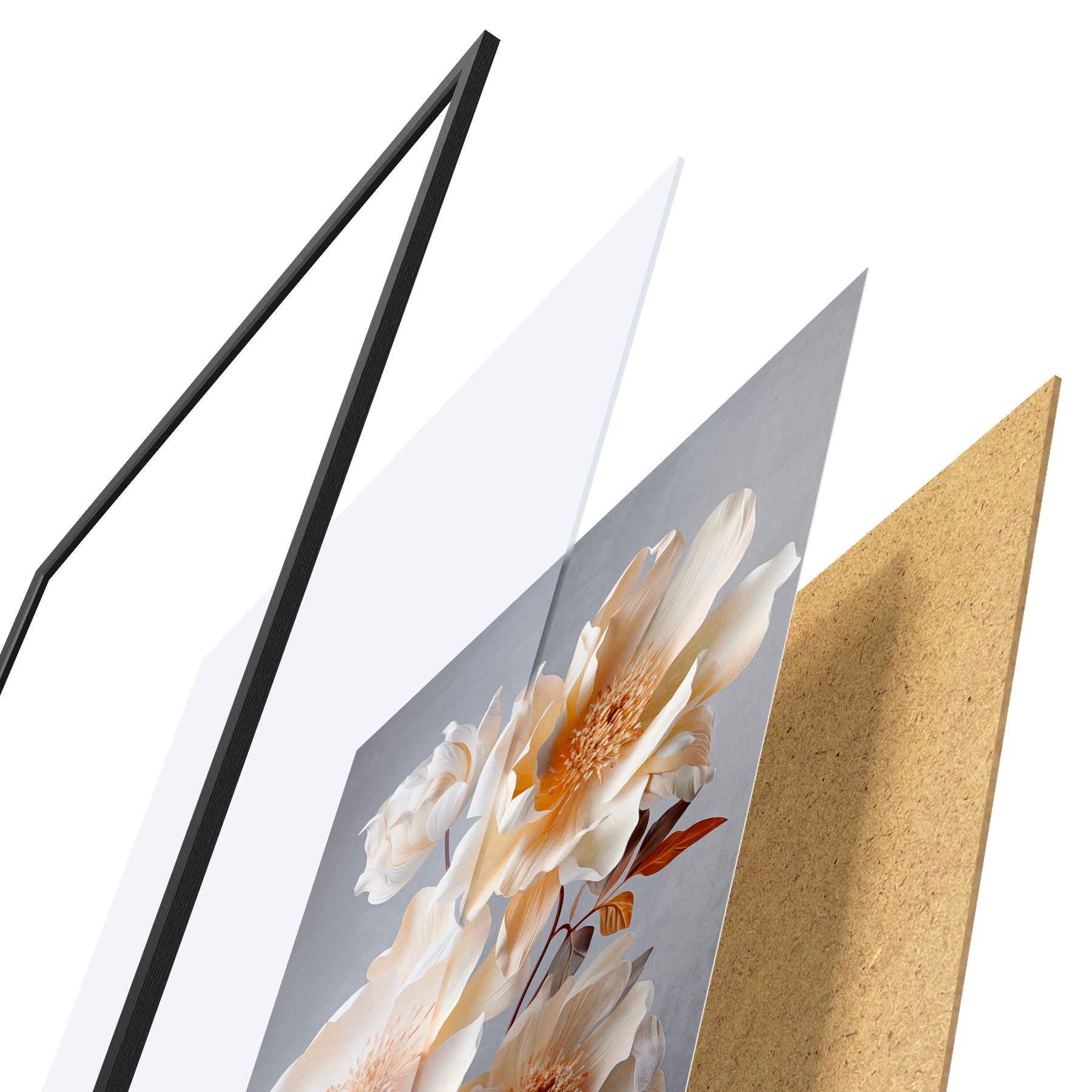 Plakát se skládá z rámu, plexiskla, tištěného obrazu a dřevotřískového podkladu. Díky úchytům na zadní straně lze plakát ihned zavěsit na zeď.