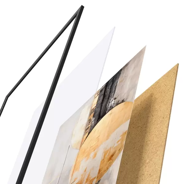 Plakát se skládá z rámu, plexiskla, tištěného obrazu a dřevotřískového podkladu. Díky úchytům na zadní straně lze plakát ihned zavěsit na zeď.