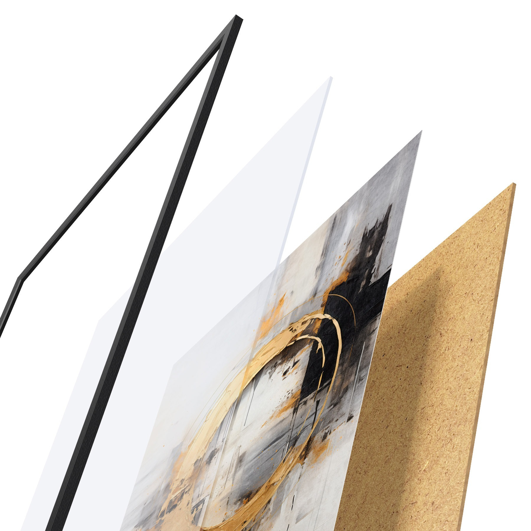 Plakát se skládá z rámu, plexiskla, tištěného obrazu a dřevotřískového podkladu. Díky úchytům na zadní straně lze plakát ihned zavěsit na zeď.