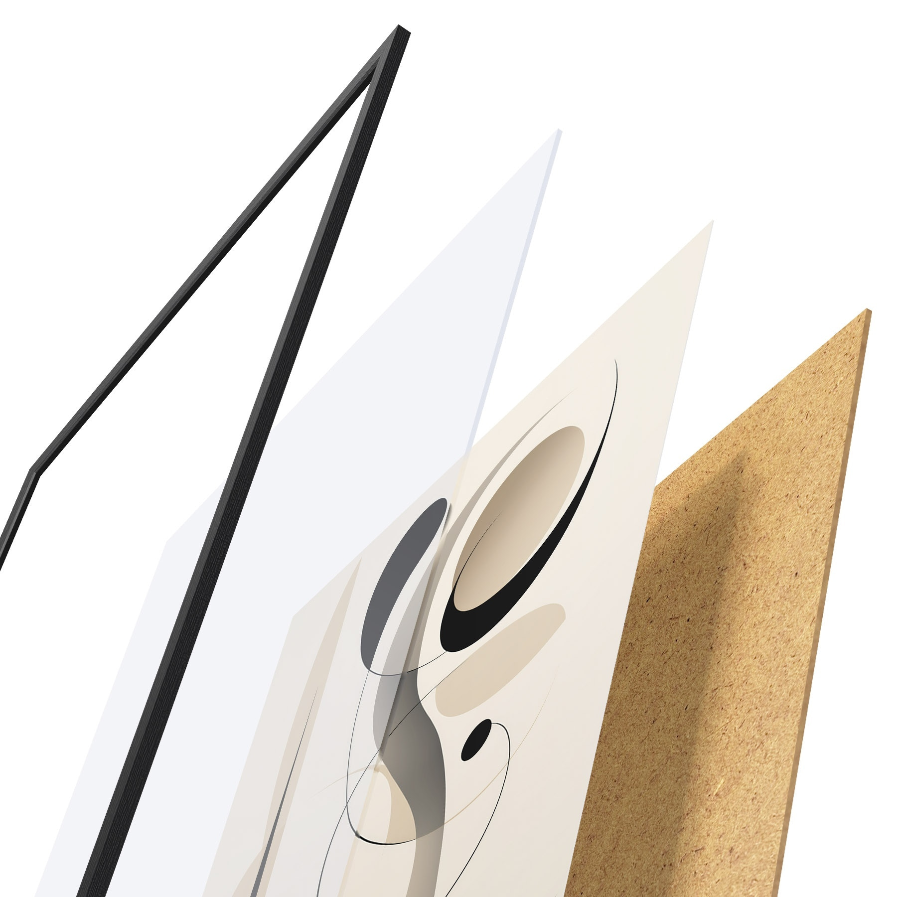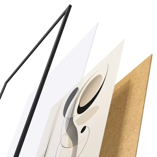 Plakát se skládá z rámu, plexiskla, tištěného obrazu a dřevotřískového podkladu. Díky úchytům na zadní straně lze plakát ihned zavěsit na zeď.