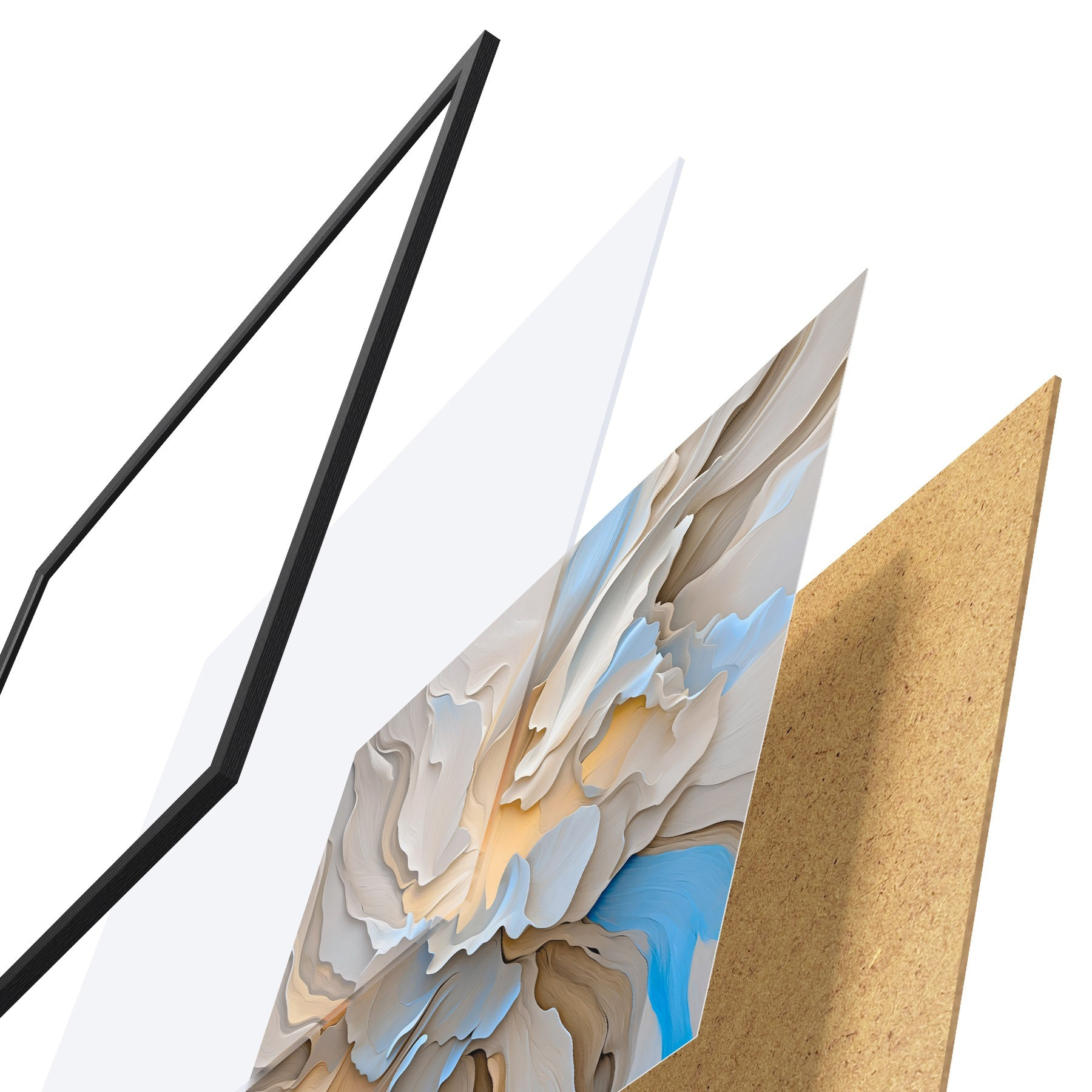 Plakát se skládá z rámu, plexiskla, tištěného obrazu a dřevotřískového podkladu. Díky úchytům na zadní straně lze plakát ihned zavěsit na zeď.
