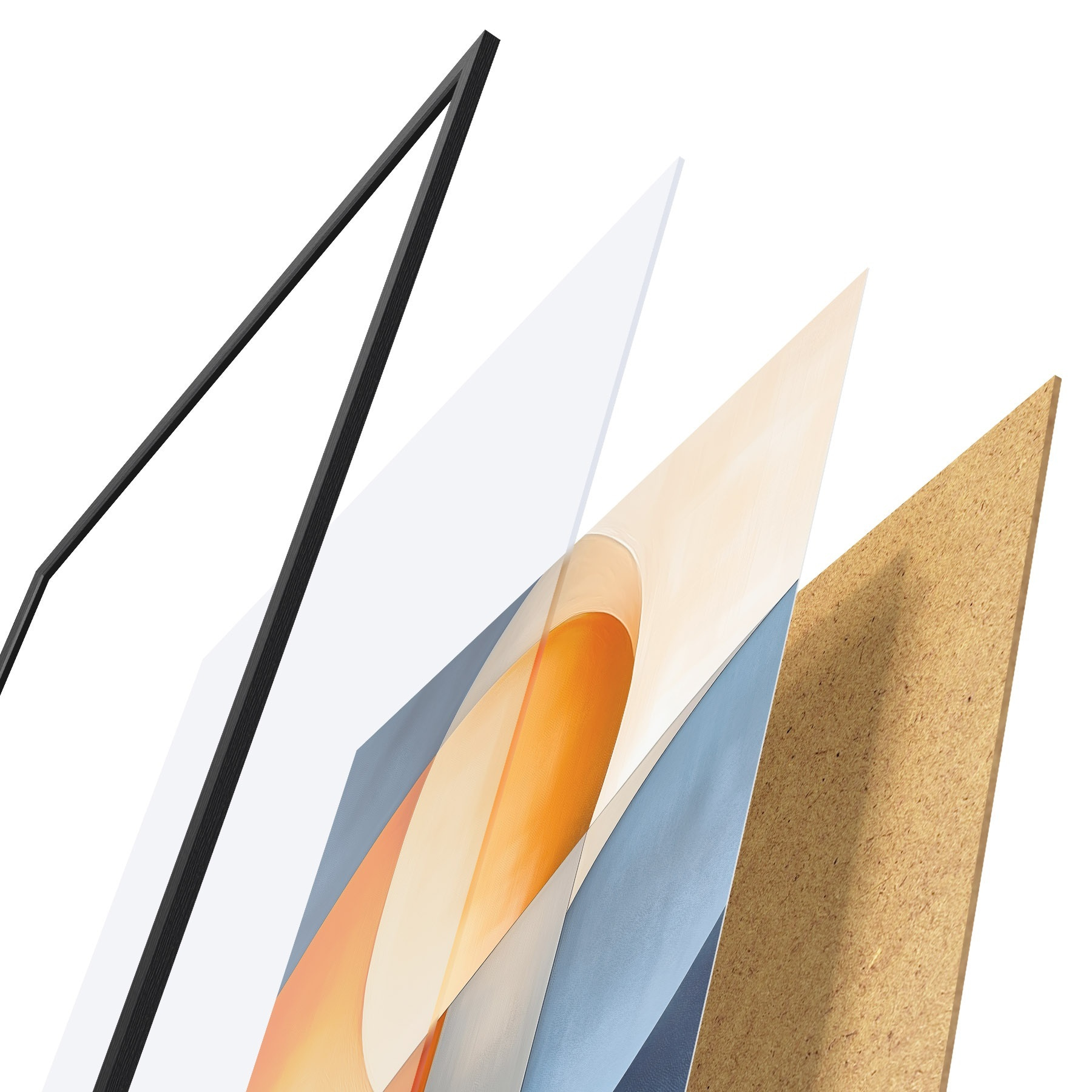 Plakát se skládá z rámu, plexiskla, tištěného obrazu a dřevotřískového podkladu. Díky úchytům na zadní straně lze plakát ihned zavěsit na zeď.