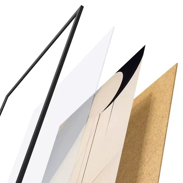 Plakát se skládá z rámu, plexiskla, tištěného obrazu a dřevotřískového podkladu. Díky úchytům na zadní straně lze plakát ihned zavěsit na zeď.