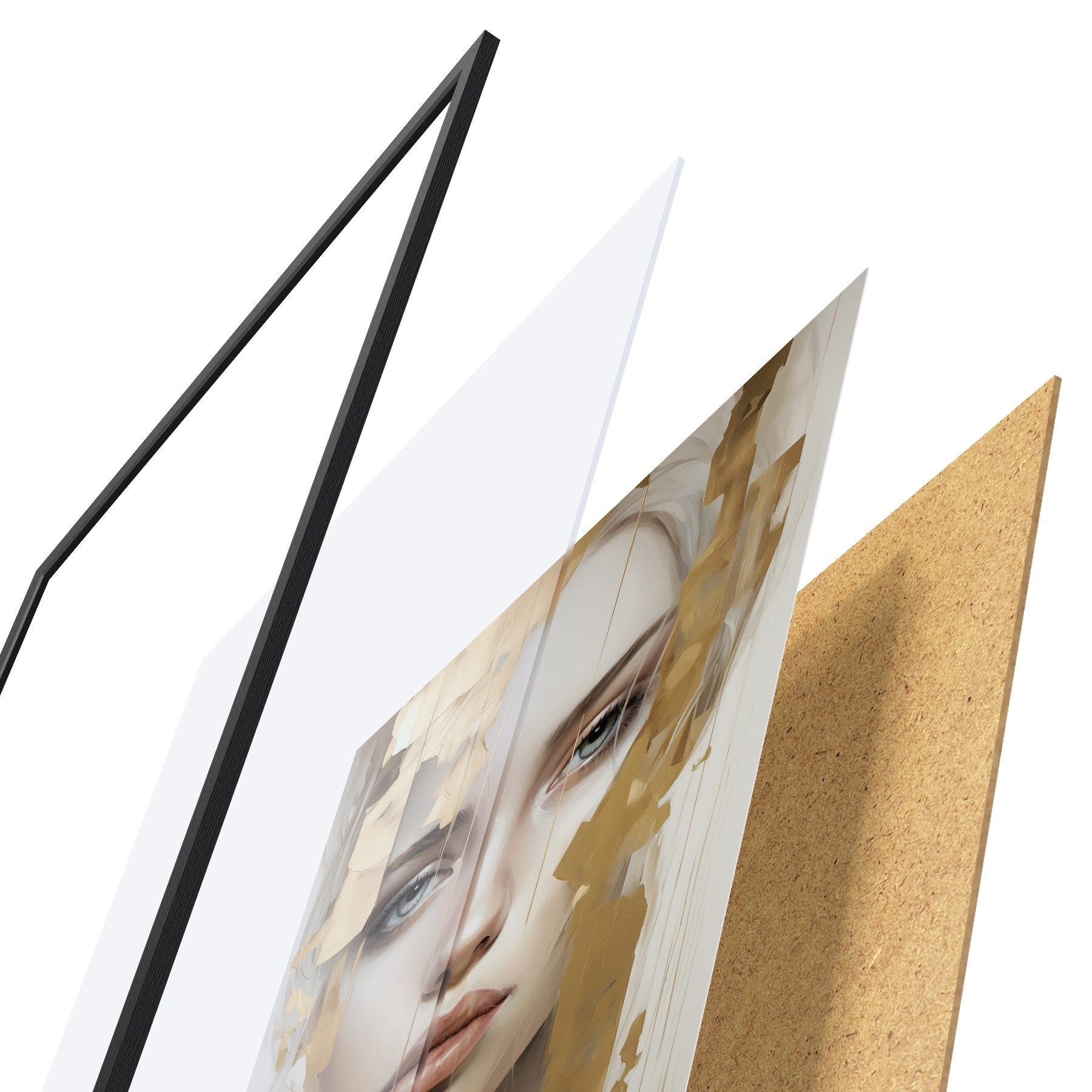 Plakát se skládá z rámu, plexiskla, tištěného obrazu a dřevotřískového podkladu. Díky úchytům na zadní straně lze plakát ihned zavěsit na zeď.